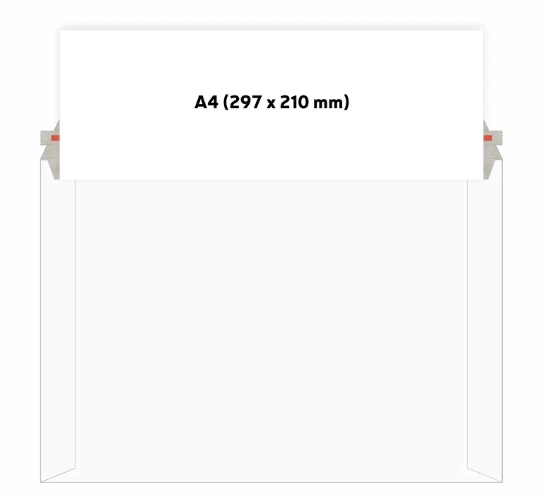 Zamykanie: Odrywany biały pasek z klejem, Rozmiar listu Poczty Polskiej: M